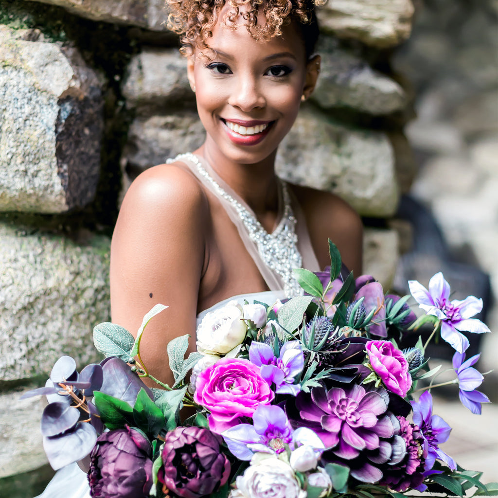 wine peonies . . . dark pink ranunculuses . . . lilac roses . . . purple clematis . . . scabiosa . . . thistle . . . succulents